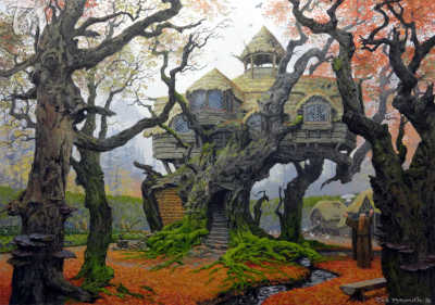 Rhosgobel est un lieu simple formé par les branches d'un grand chêne fourni. Radagast entretient le plus important jardin de simples en Terres du Milieu, et beaucoup des Peuples Libres qui vivent dans la forêt vont à Rhosgobel quand ils en ont besoin.