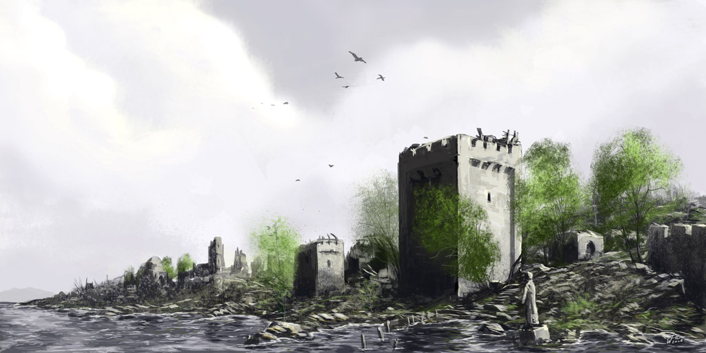 Posée comme un joyau sur la rive méridionale du Nenuial (Lac Evendim), Annûminas - la première et seule capitale d'Arnor - luisait autrefois d'un faible éclat contre l'obscurité vespérale du ciel, ses nombreuses torches de fête étaient une marque incandescente pour tous ceux qui traversaient le Royaume Septentrional. Il n'en demeure pas grand chose aujourd'hui, si ce n'est des blocs ébréchés et tombant en ruine, des piliers écroulés et le vague contour d'une grande cité dans les collines venteuses des rives du Nenuial. La nuit, Annûminas est un endroit hanté, désolé et sombre n'offrant à personne direction ou refuge.