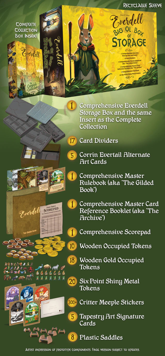 Rangez tout le matériel du jeu de base et des extensions d'Everdell dans la même boîte et le même système de stockage que la collection complète.