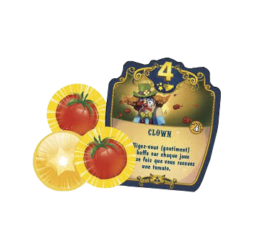 Note : Un joueur ne peut pas recevoir plus de 5 tomates par numéro. En fin de partie, le(s) joueur(s) ayant reçu le plus de tomates perdent 3 applaudissements, et le(s) joueur(s) ayant reçu le moins de tomates gagnent 3 applaudissements !