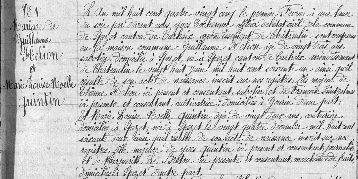 Acte de Mariage Guillaume et Marie Louise Heliou 1
