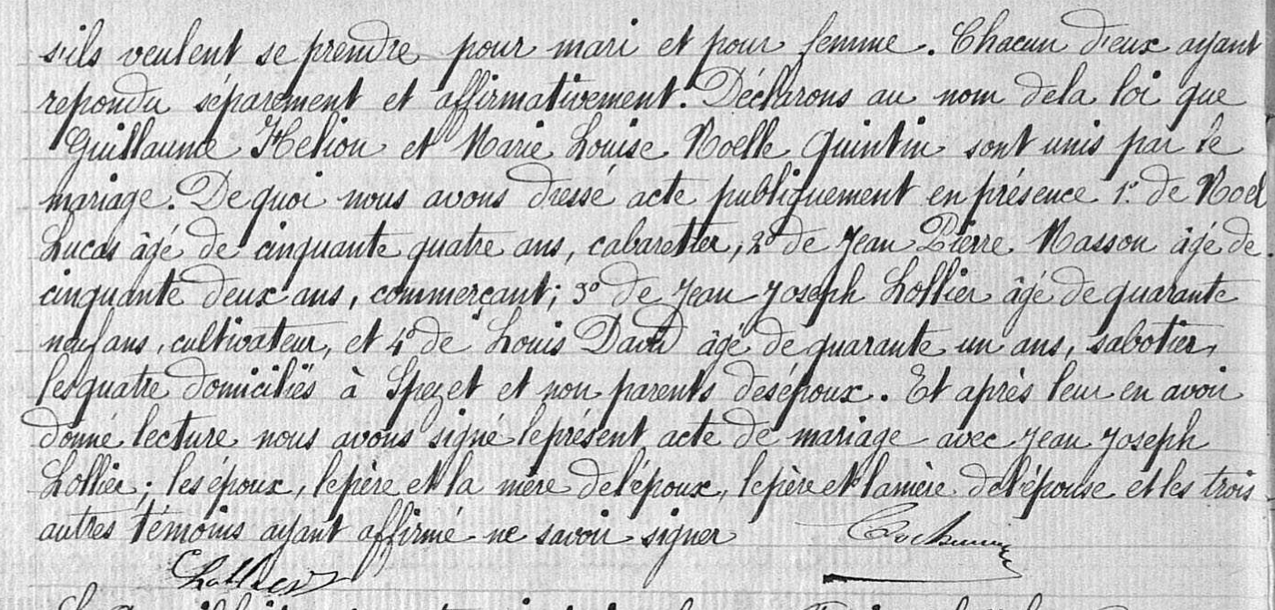 Acte de Mariage Guillaume et Marie Louise Heliou 3
